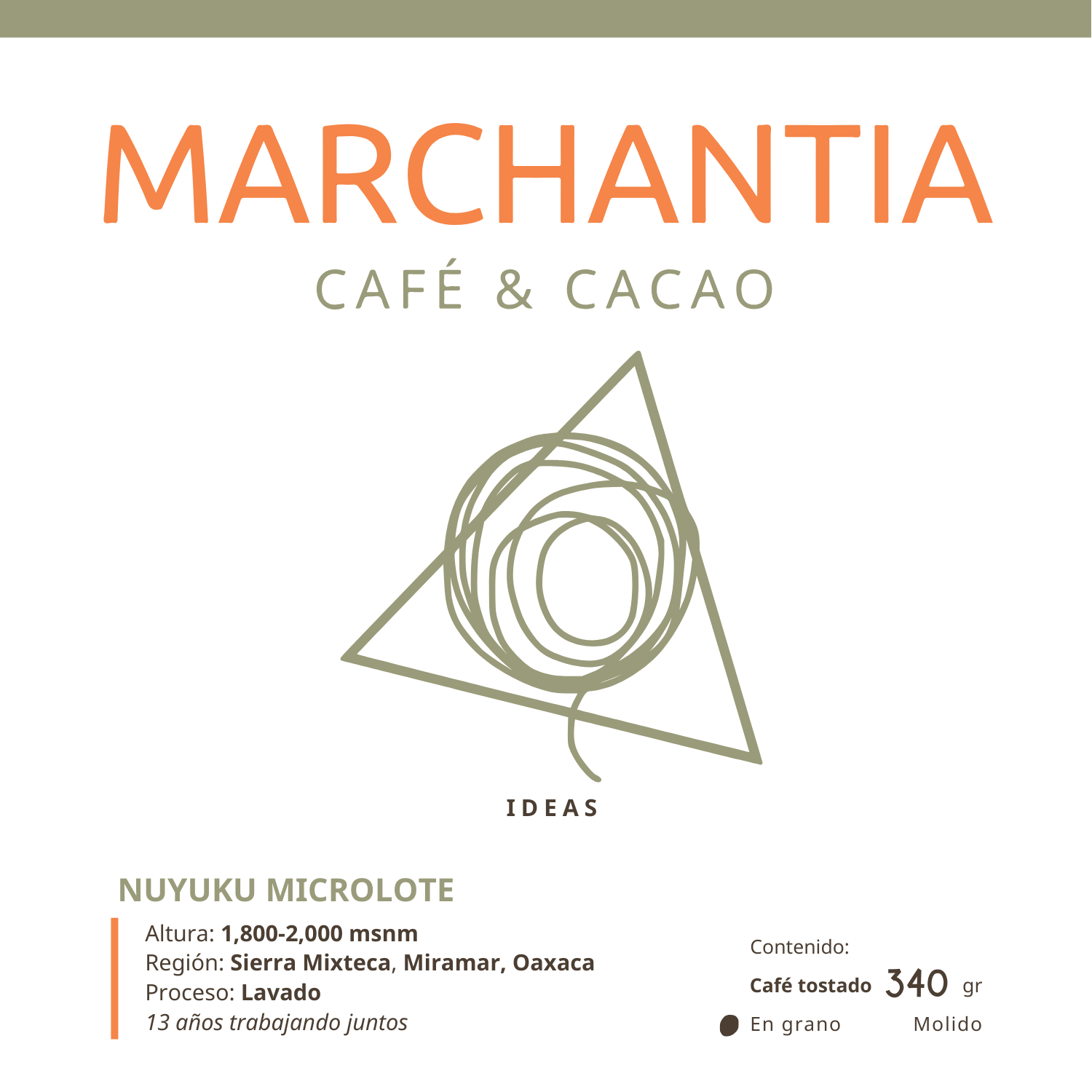 > CAFÉ EN GRANO / solicita en NOTAS si es molido. Altura: 1,800-2,000 msnm | Región: Sierra Mixteca, Oaxaca. Guadalupe Miramar, Yucuhiti | Proceso: Lavado | 13 años trabajando juntos | Asesoría agrícola: Equipo Marchantia | Tostadora invitada: Daniela Pérez